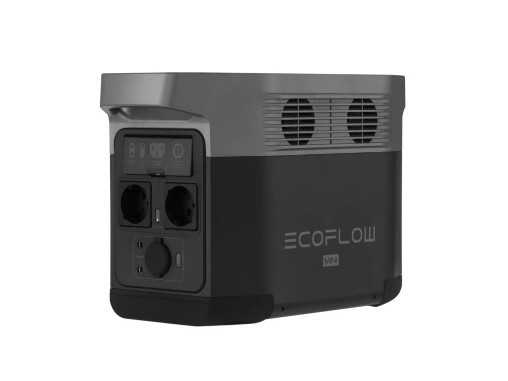 Nabíjecí stanice Ecoflow Delta Mini s kapacitou 882 Wh nabízí výstupy: 2x 230 V, 1x autozásuvka 12V, 2x DC5521, 3x USB (z toho 1 Fast Charge) a 1x USB-C 100W. Pomocí technologie X-stream a nabijete tuto stanici na 100% za 1,6 hodiny a díky její hmotnosti 11 kg ji snadno přemístíte z auta na chatu, karavan, loď, nebo všude tam, kde je potřeba konstantní výkon 1400 W. Podporuje solární panely ecoflow i třetích stran.