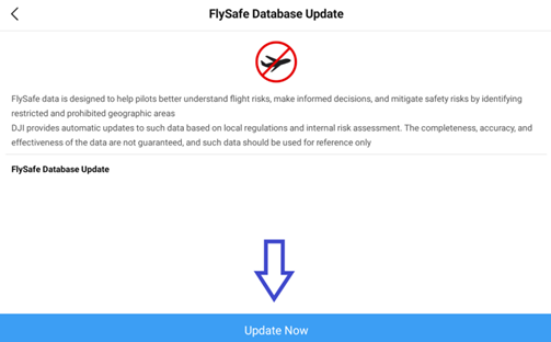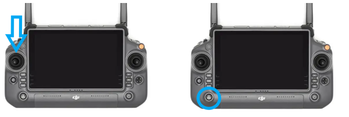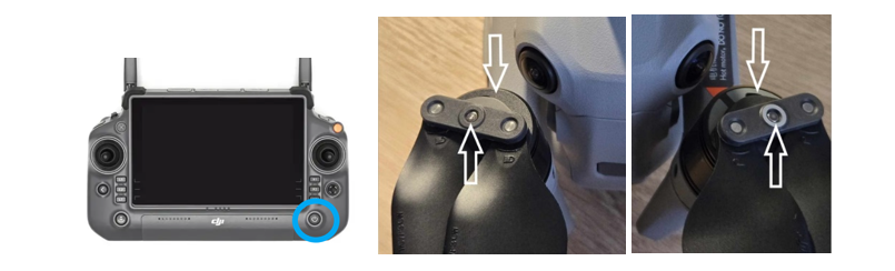 - Zapněte ovladač - krátce a dlouze stisknout – otevře se app DJI – určená k letu – vpravo dole zmáčkněte tlačítko, poté zkontrolujte nastavení a vpravo nahoře vykřížkujte.